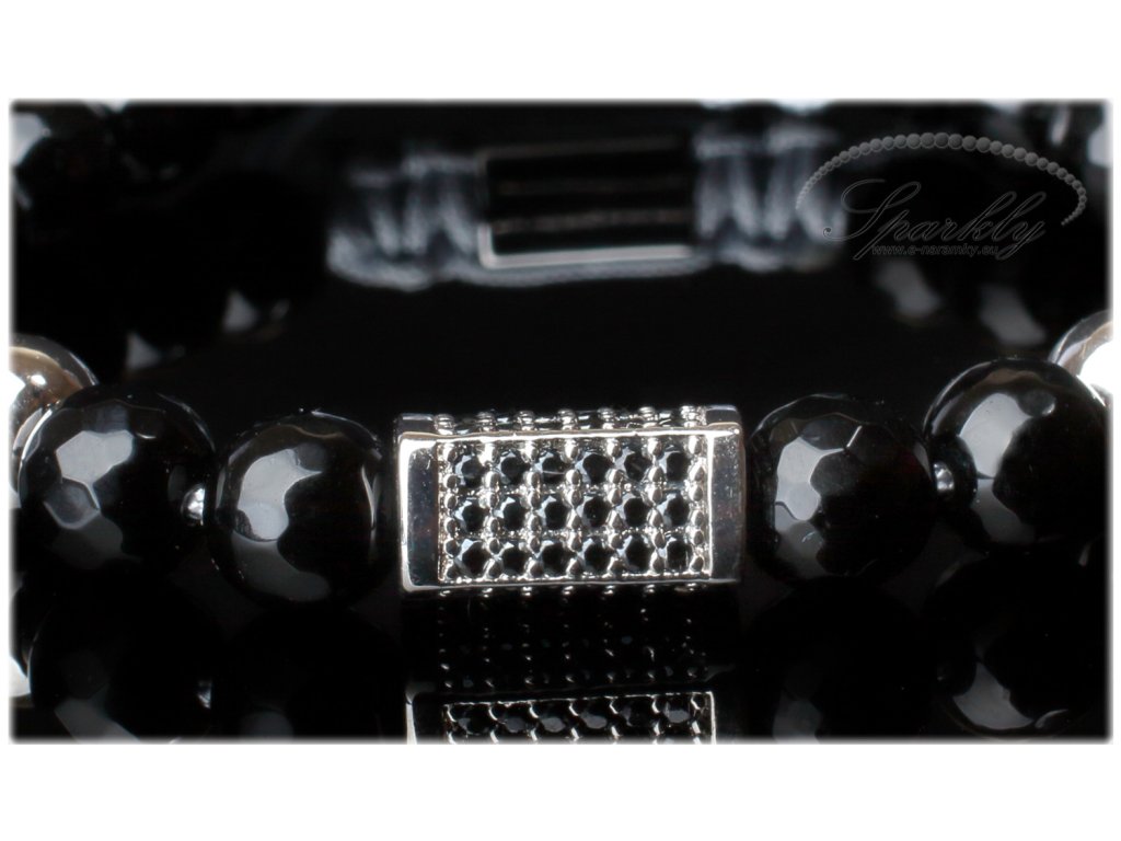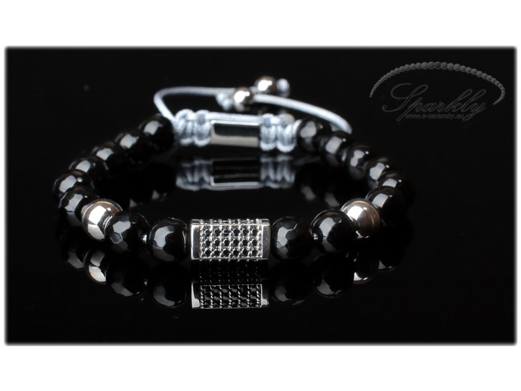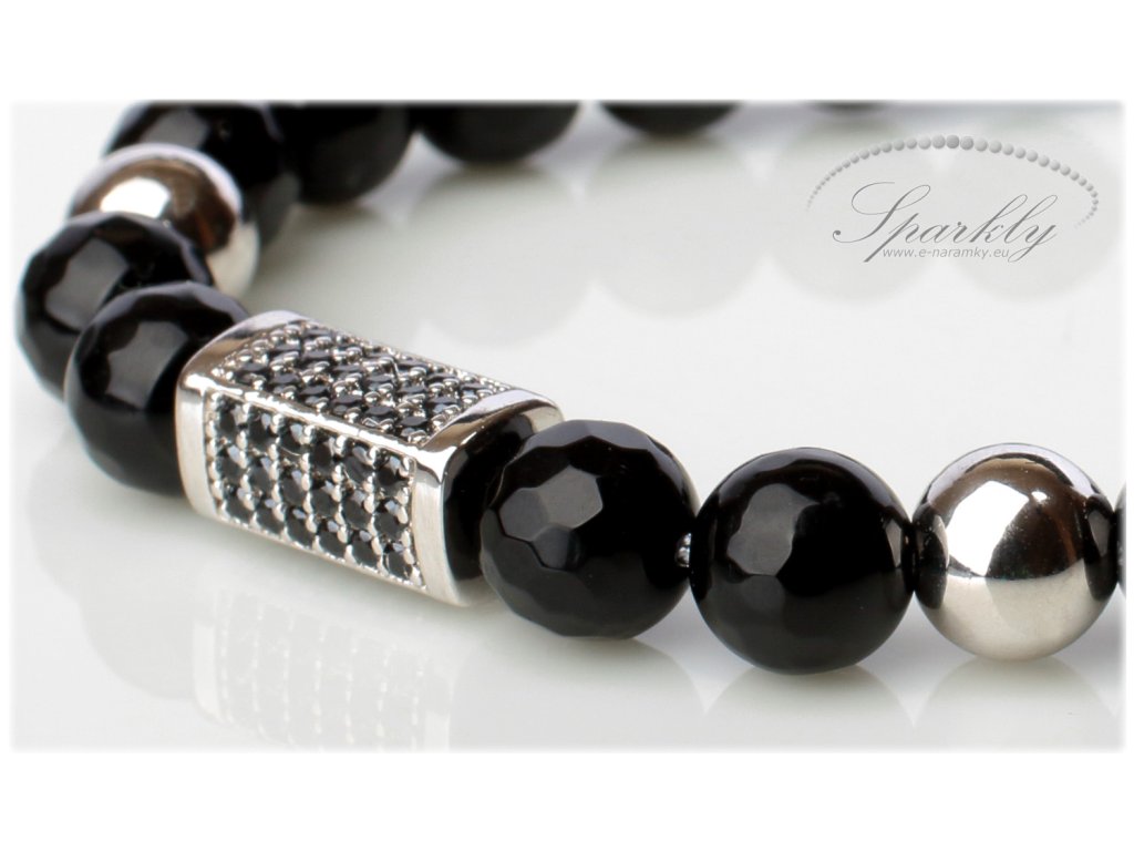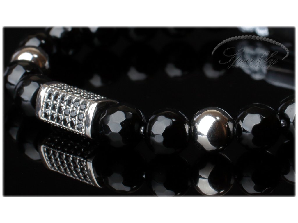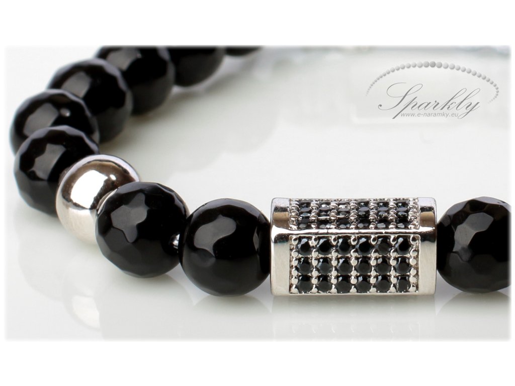 Materiál: broušený onyx, kuličky stříbrné barvy z ušlechtilého kovu a kvádr osázený kubickými zirkony