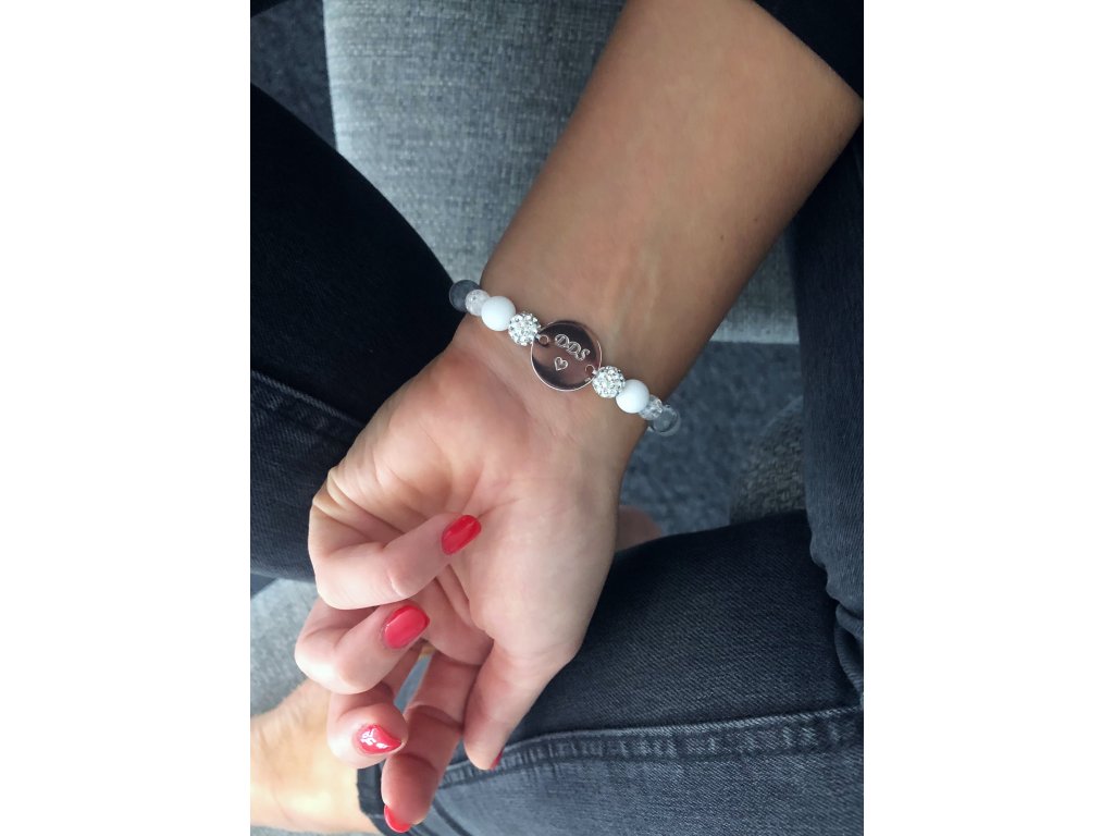 - Kvalitní ručně vyráběný náramek z polodrahokamů a stříbrné destičky (Ag 925)