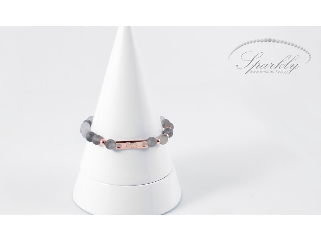 - Kvalitní ručně vyráběný náramek z polodrahokamů a destičky v barvě rosegold s textem na přání.