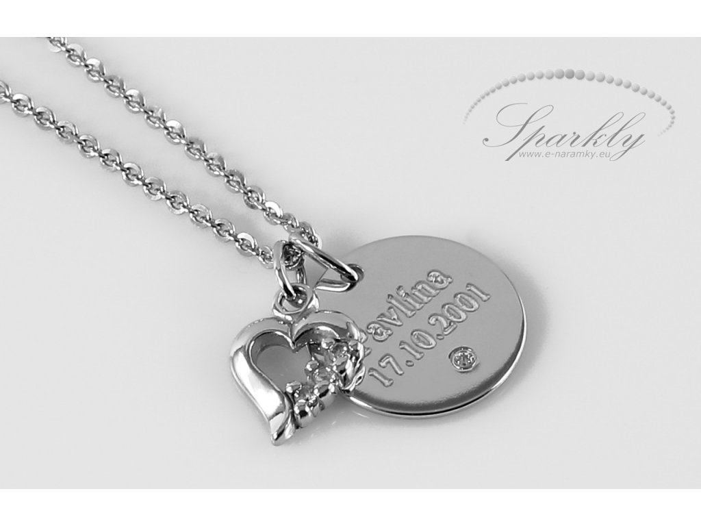 Personalizovaný stříbrný náhrdelník Elara s přívěskem a srdíčkem