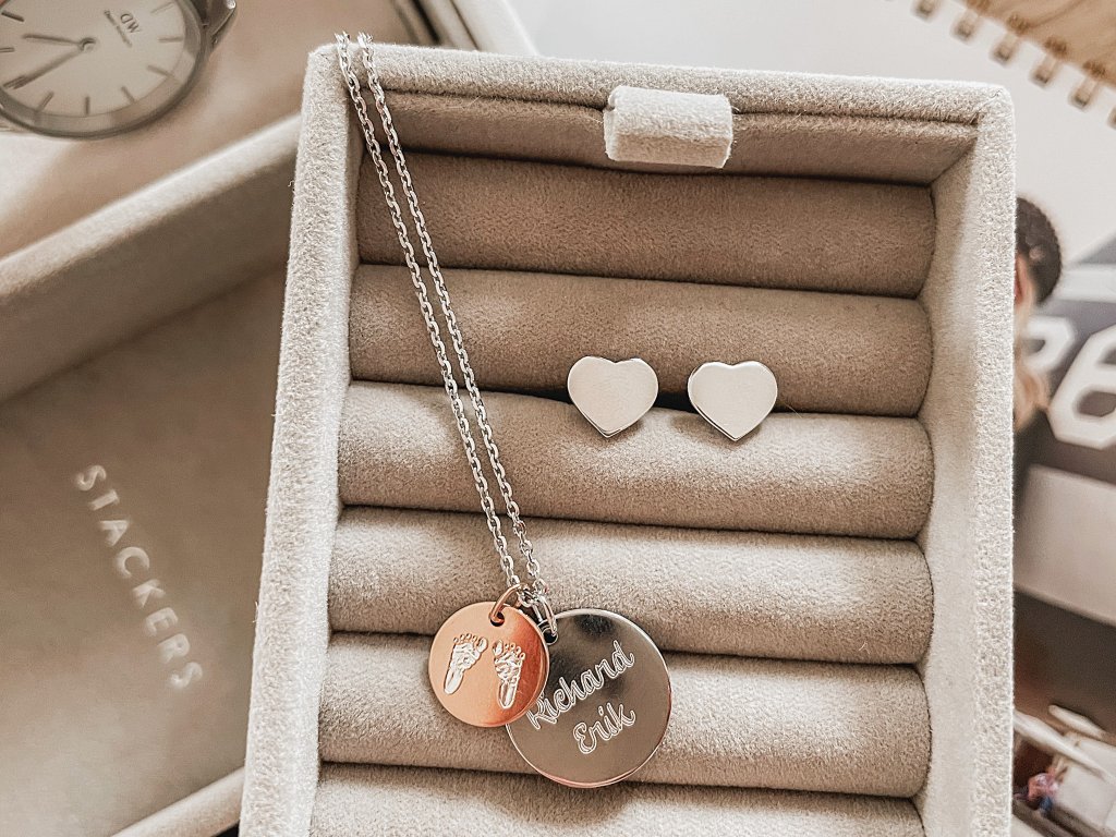Malý detail, který vypráví velký příběh. Každý přívěsek si můžete nechat vygravírovat podle sebe – jméno, datum či vzkaz – a proměnit ho tak v jedinečný personalizovaný šperk s osobním významem. Elegantní kombinace stříbra a růžového zlata dělá z tohoto personalizovaného náhrdelníku nadčasový doplněk i krásný dárek pro vaše nejbližší.