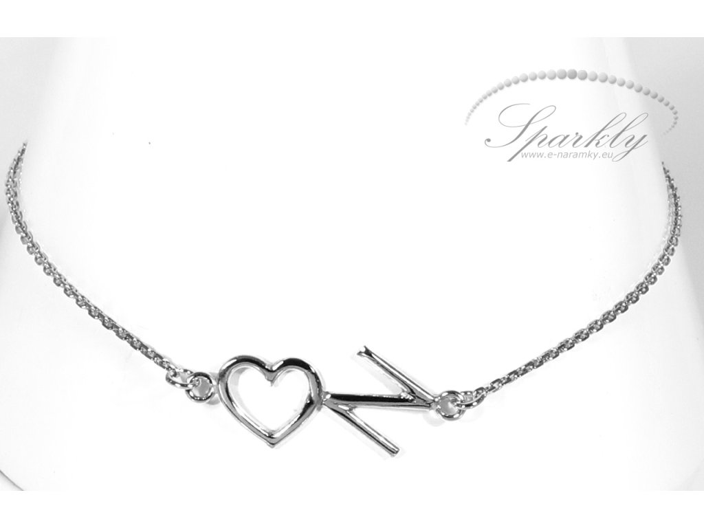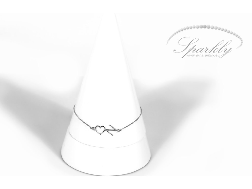 Stříbrný personalizovaný náramek Glosie ozdobený písmenem a srdíčkem