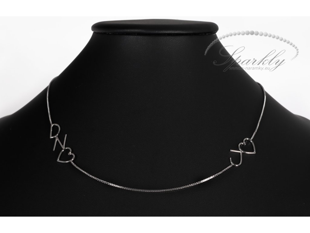 Stříbrný personalizovaný náhrdelník Zara ozdobený písmeny a srdíčky