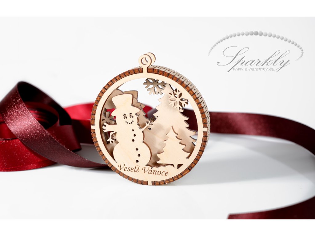 Vánoční dřevěná 3D ozdoba - Sněhulák