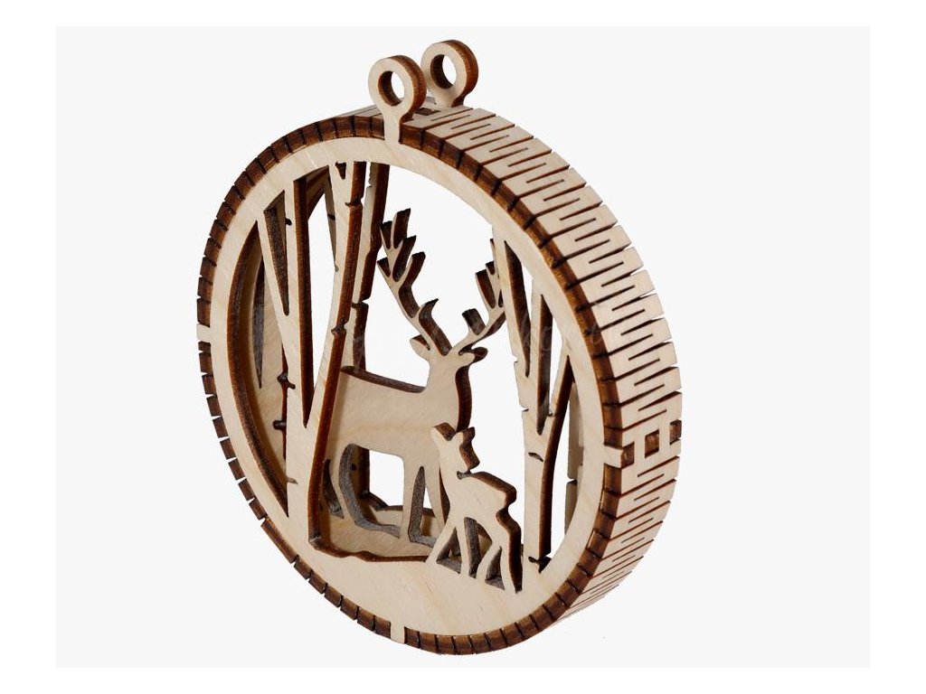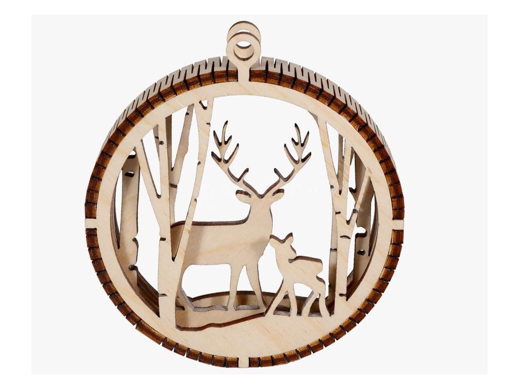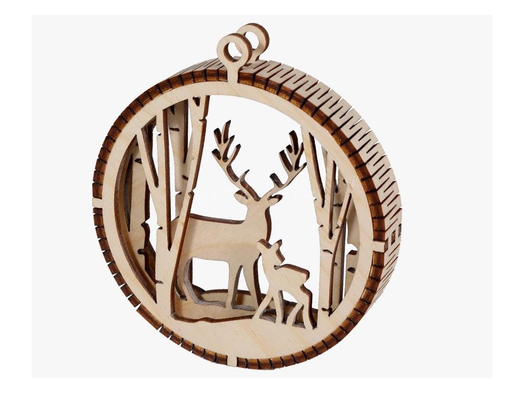 Vánoční dřevěná ozdoba - Jelen s kolouškem