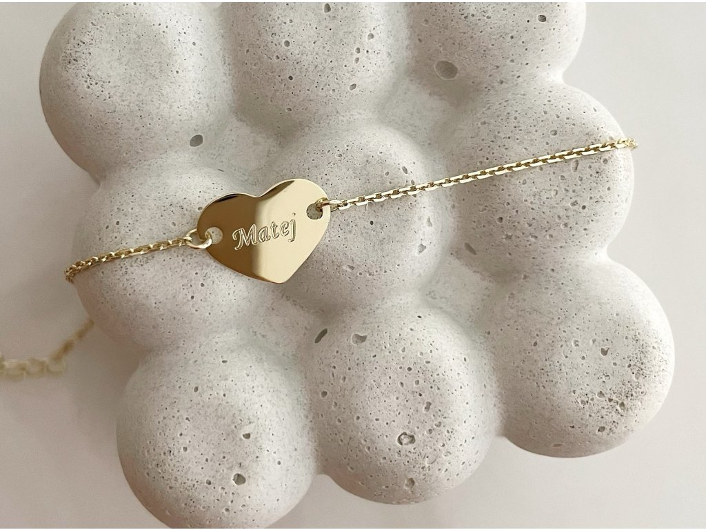 Objevte krásu personalizovaného náramku, který vypráví váš jedinečný příběh a nese hluboký význam lásky a blízkosti. Tento zlatý náramek s ručně vyráběným srdíčkem a vlastním rytím je ideálním dárkem pro ženy, které chtějí nosit nejen šperk, ale i vzpomínku na výjimečné chvíle. Dopřejte si nebo obdarujte milovanou osobu originálním a elegantním personalizovaným náramkem, který zaujme precizním zpracováním a nadčasovým stylem.